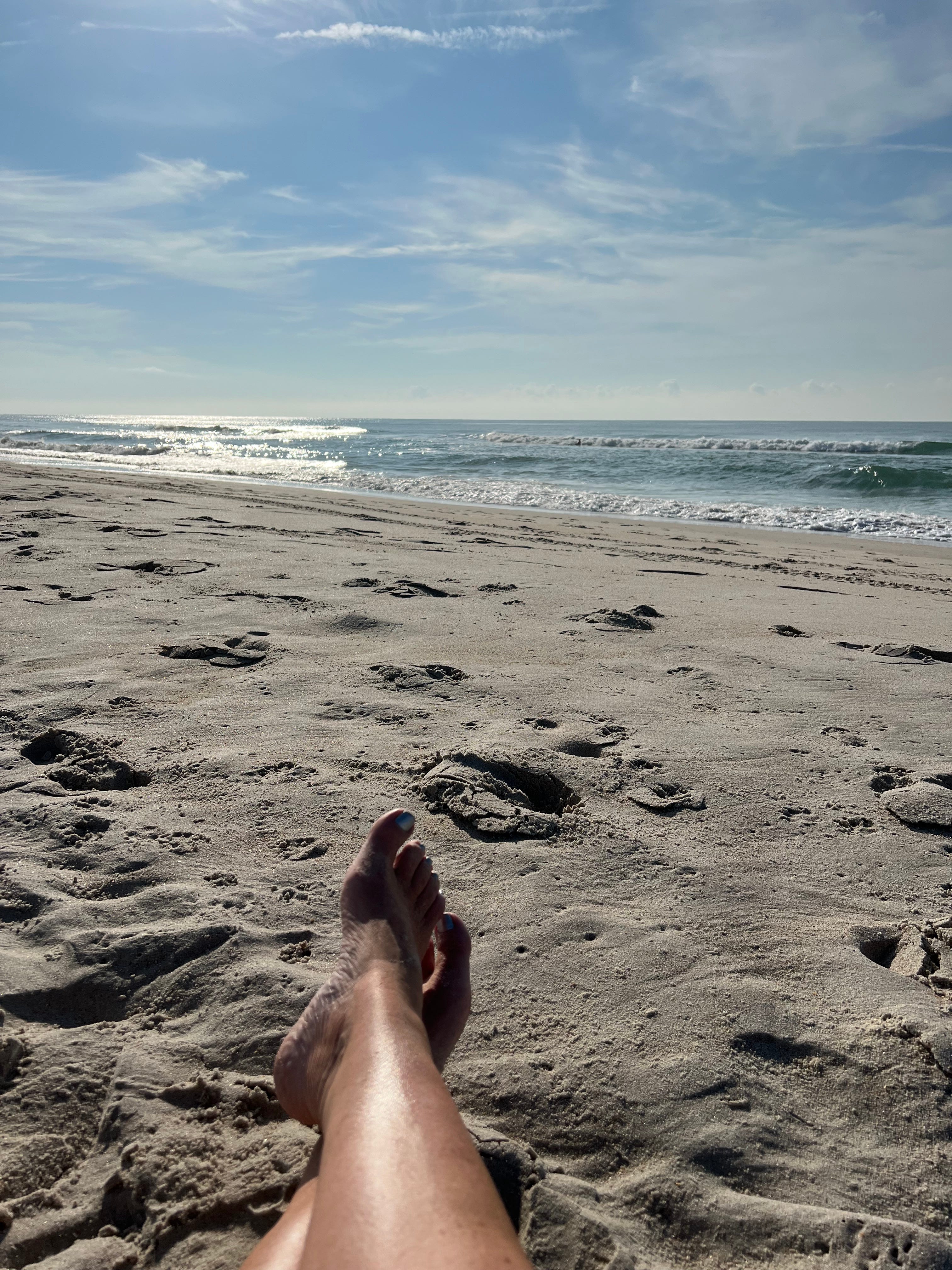 I took this picture one week ago today—enjoying both time and quiet. (The beach definitely helps!)
